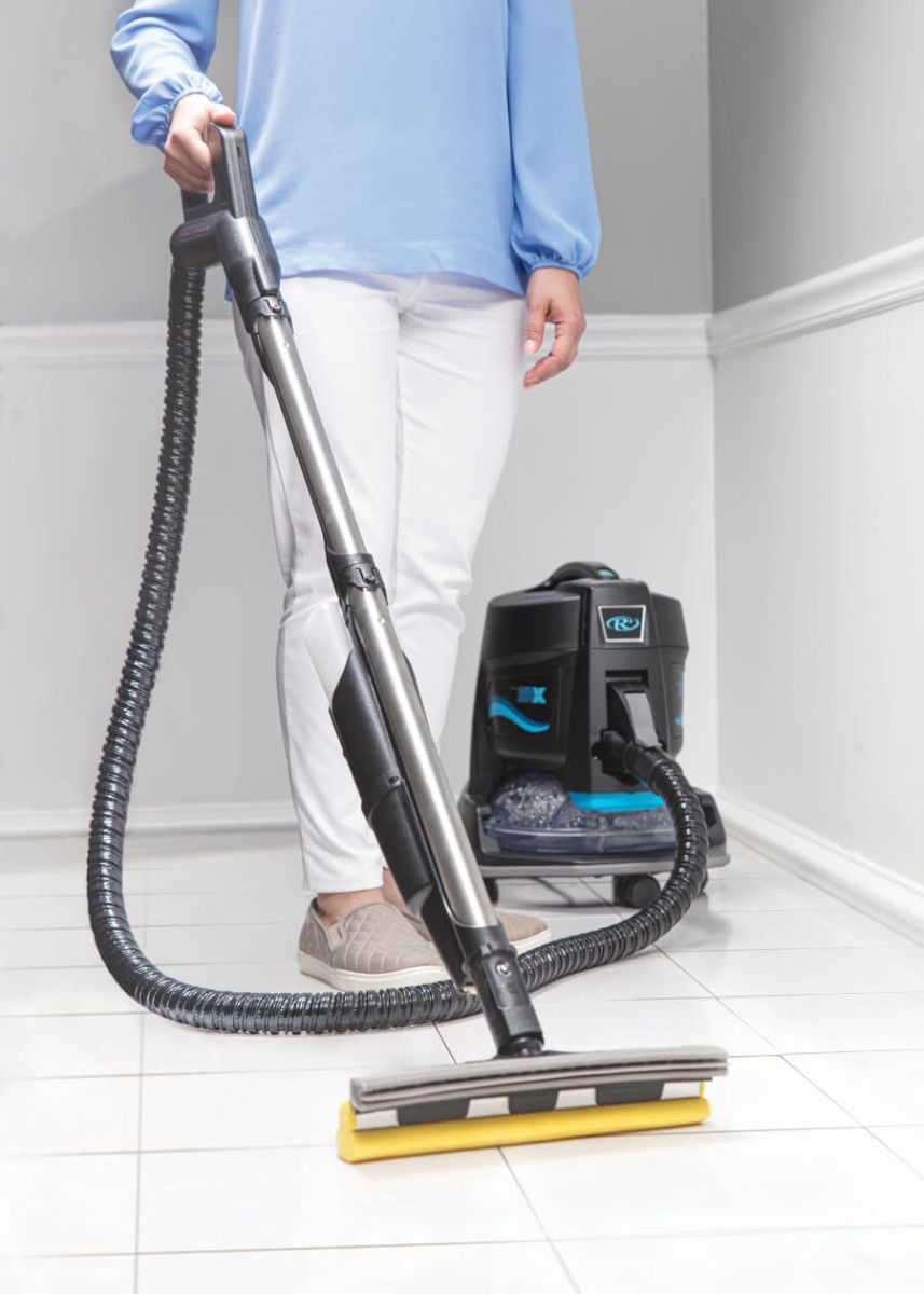 RainJet sử dụng khả năng làm sạch tự nhiên của nước để loại bỏ bụi bẩn bám trên nền gạch, vải sơn và các bề mặt sàn cứng khác